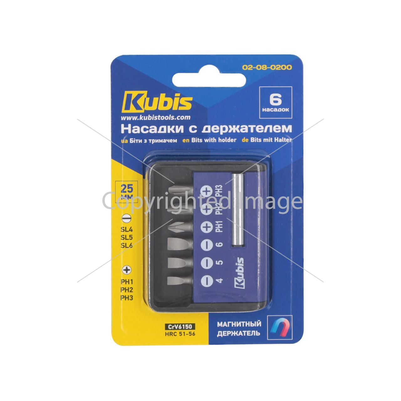 Біти з тримачем 6 шт у кейсі Kubis 25 мм —SL4, 5, 6 мм, PH1, PH2, PH3
