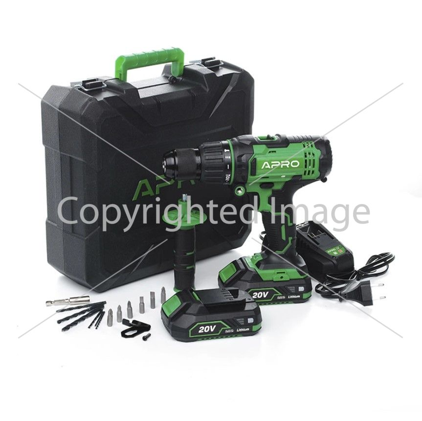 Дриль-шуруповерт ударний APRO 20В, 2А, 20HD2 АКБ, ЗУ, кейс Дриль-шуруповерт ударний APRO 20В, 2А, 20HD2 АКБ, ЗУ, кейс
