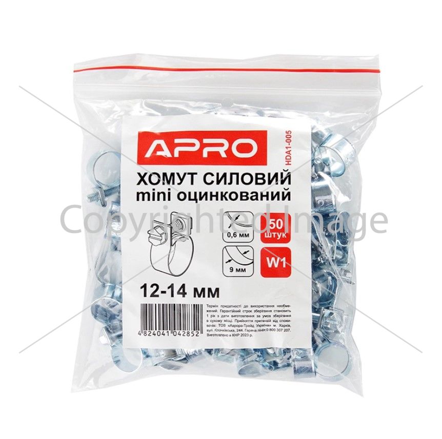 Хомут силовий Mini оцинкований W1 16-18 мм (пач 50шт) APRO