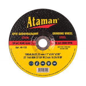 Круги шліфувальні по металу Ataman 27 14А 180х6.0х22.23 Круги шліфувальні по металу Ataman 27 14А 180х6.0х22.23
