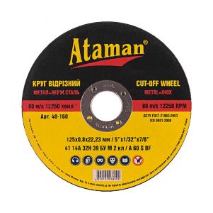 Круги відрізні по металу Ataman 41 14А 125х0.8х22.23 Круги відрізні по металу Ataman 41 14А 125х0.8х22.23