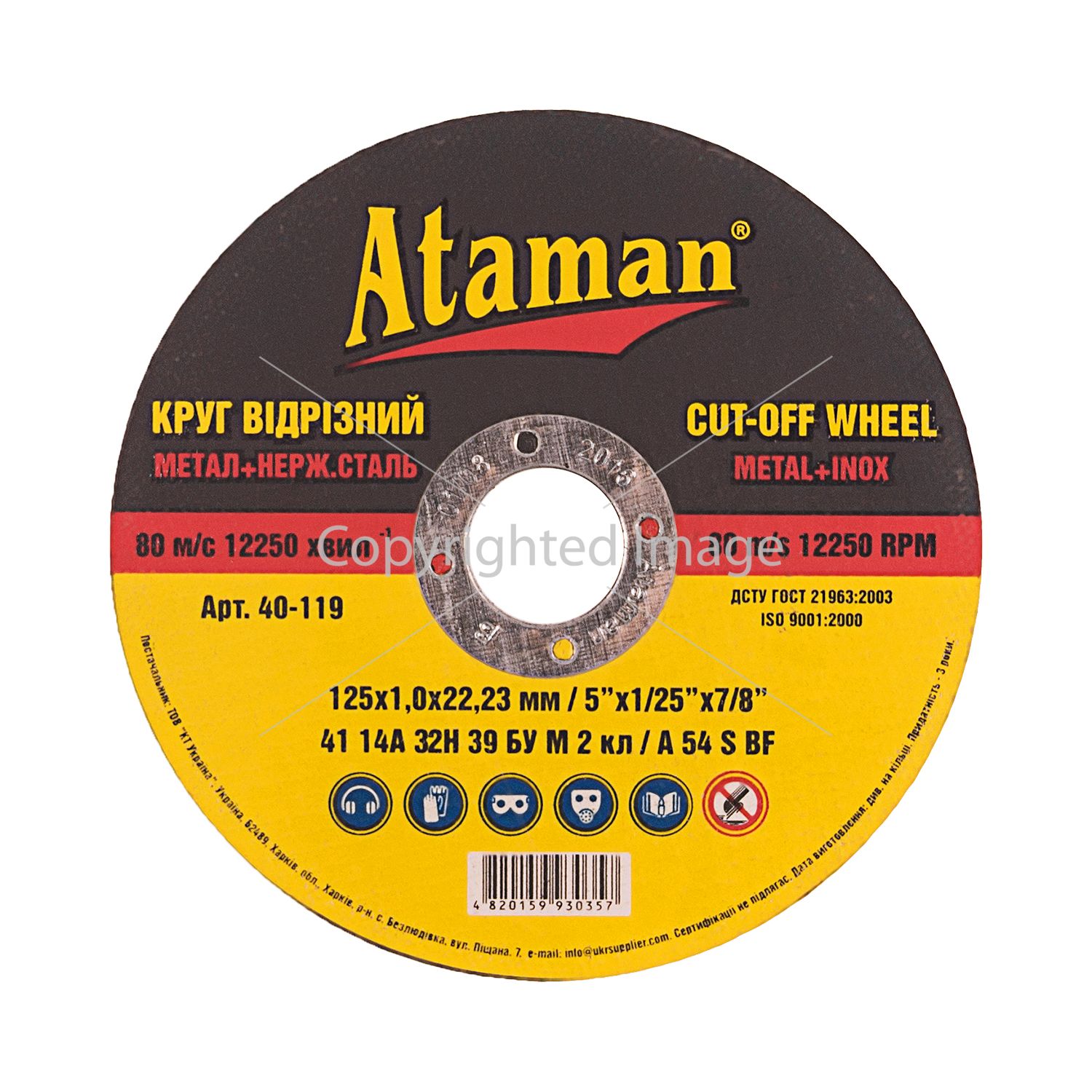 Круги відрізні по металу Ataman 41 14А 125х1.0х22.23 Круги відрізні по металу Ataman 41 14А 125х1.0х22.23