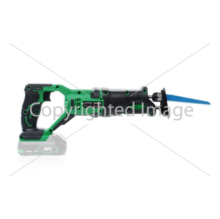 Акумуляторна шабельна пила 20 RS оснащена можливістю повороту полотна на 180 градусів, що забезпечує зручність при виконанні робіт над головою та у важкодоступних місцях. Така конструкція робить інструмент більш гнучким та комфортним у використанні.