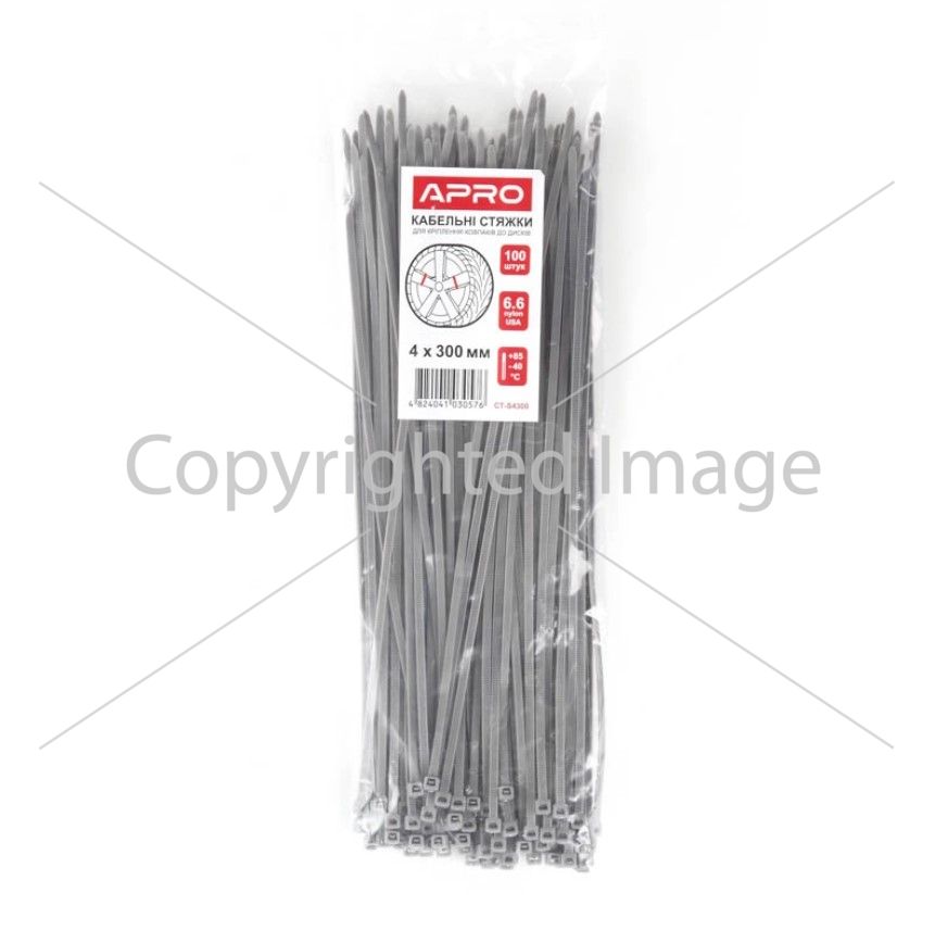 Стяжка кабельна 4x300 сіра (для ковпаків авто) (пач 100шт) APRO 4x300 сіра