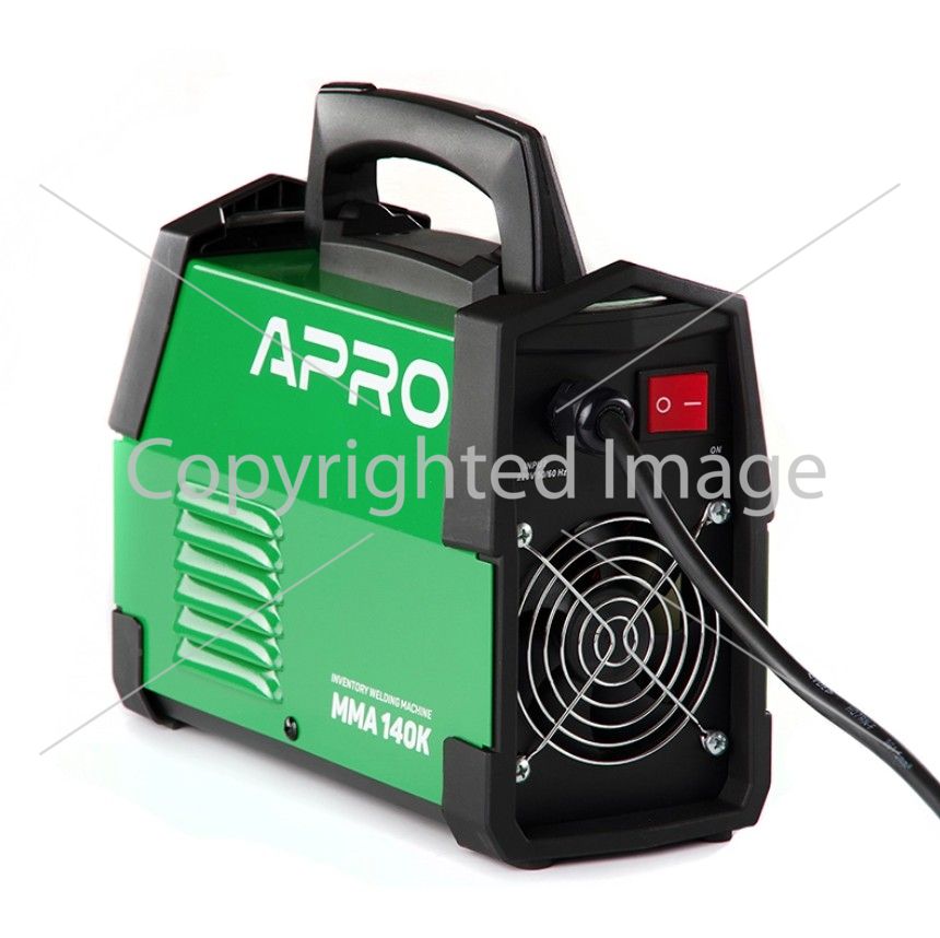 Зварювальний апарат інверторний APRO MMA-140 K, ел.4мм, + набір кабелів, кейс