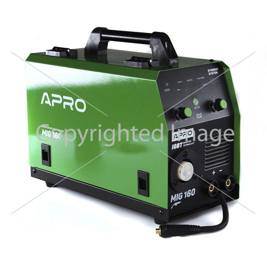 Зварювальний напівавтомат інверторний APRO MIG-160, 20-160А, ел.4мм, пр.0.8-1мм 5кг 2.5+1.5+3м (набір кабелів)