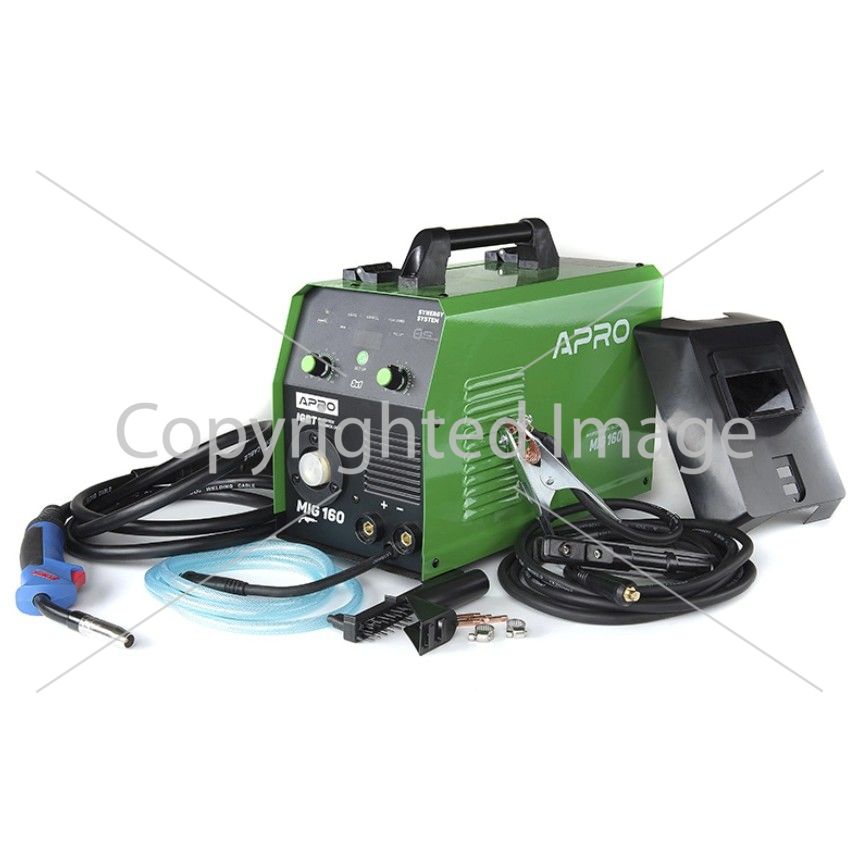 Зварювальний напівавтомат інверторний APRO MIG-160, 20-160А, ел.4мм, пр.0.8-1мм 5кг 2.5+1.5+3м (набір кабелів)